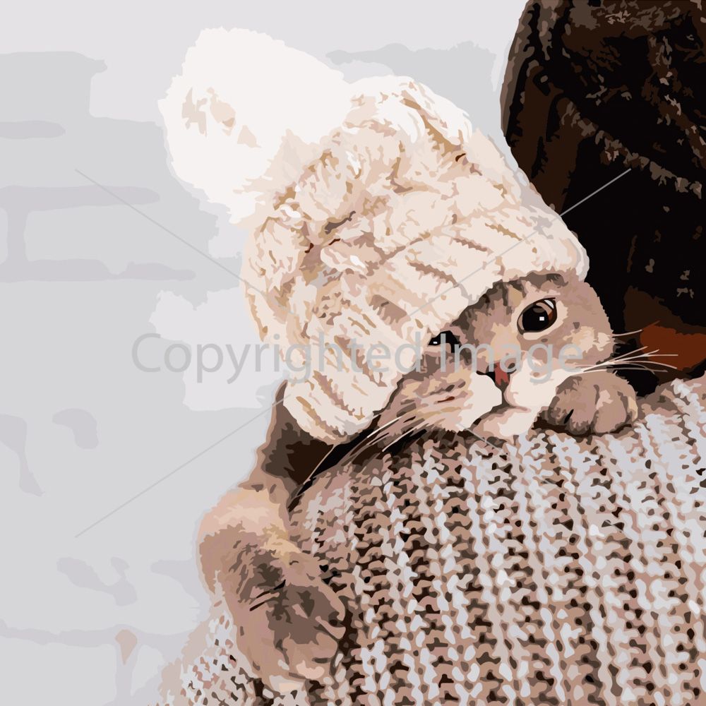Картина за номерами Strateg ПРЕМІУМ Миле кошеня розміром 40х40 см (SK038)