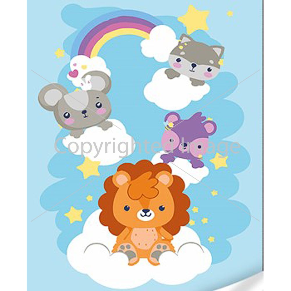 Картина за номерами Strateg ПРЕМІУМ Милі звірята на хмарках з лаком та з рівнем розміром 30х40 см (SS1079)
