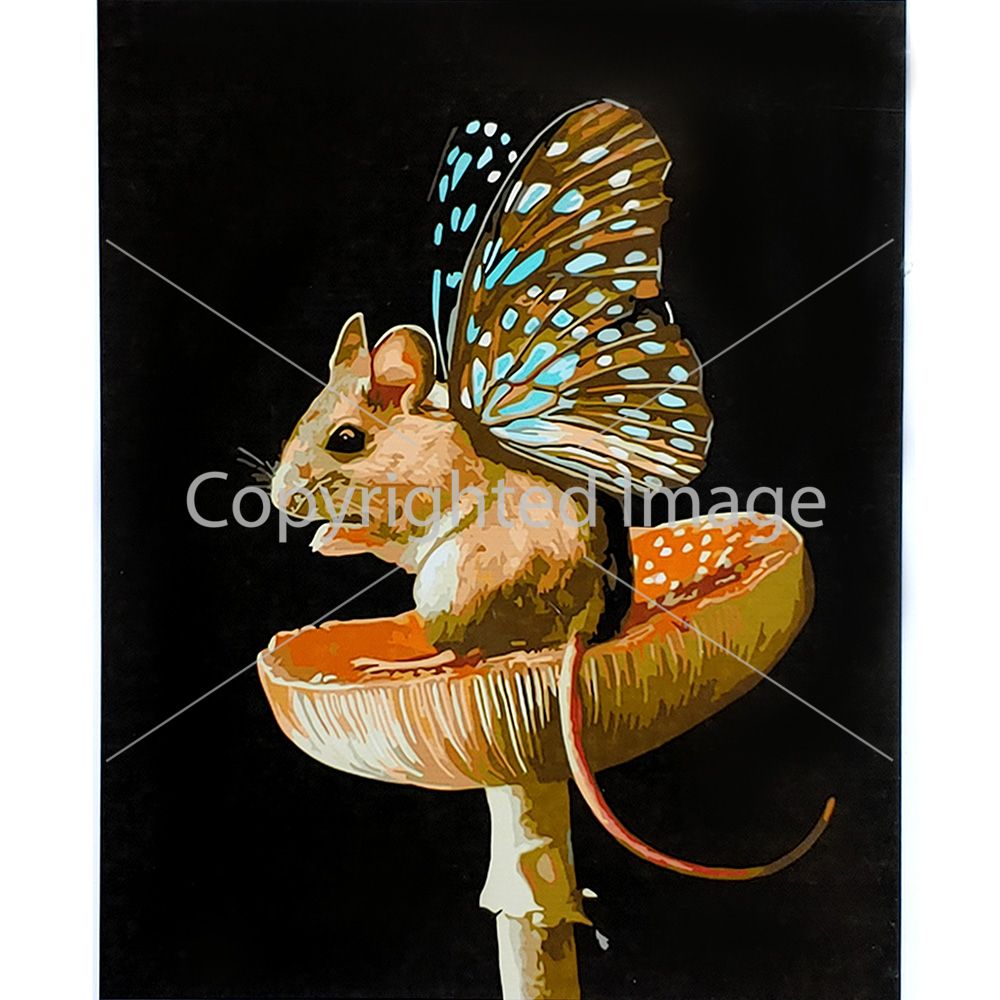 Картина за номерами Strateg ПРЕМІУМ Мишеня на грибочку з лаком розміром 40х50 см (SY6873)