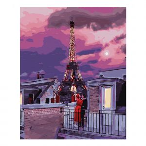 Картина за номерами Strateg ПРЕМІУМ Місто любові на заході з лаком розміром 40х50 см VA-2526