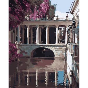 Картина за номерами Strateg ПРЕМІУМ Місток через воду з лаком розміром 30х40 см (SS-6601)