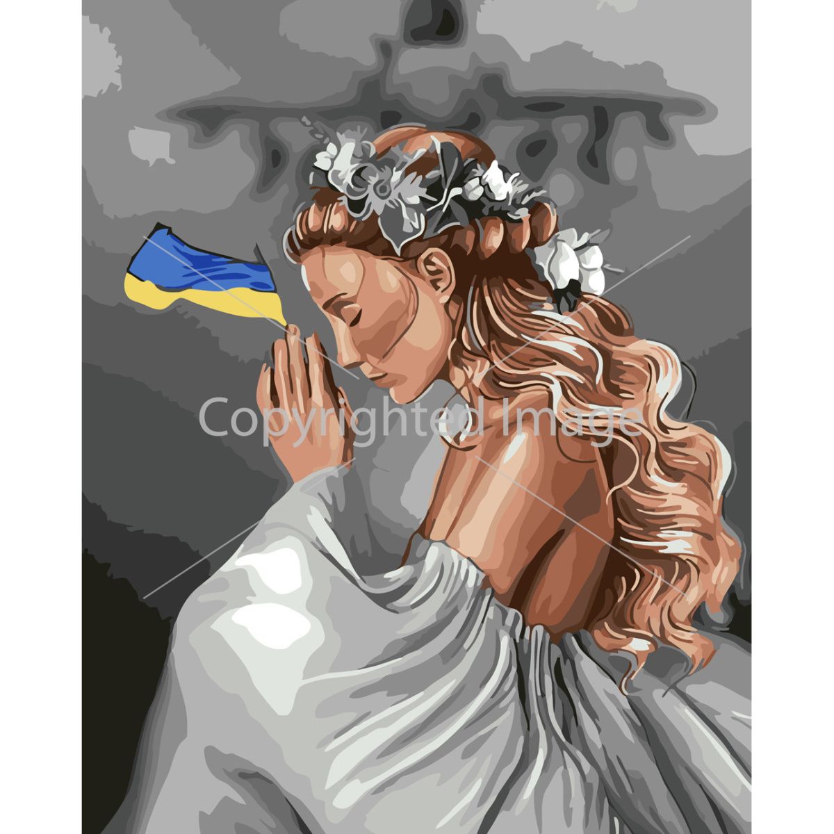 Картина за номерами Strateg ПРЕМІУМ Молитва за Україну з лаком розміром 30х40 см (SS-6563)