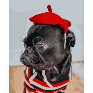 Картина за номерами Strateg ПРЕМІУМ Мопс в червоному розміром 40х50 см (GS301)