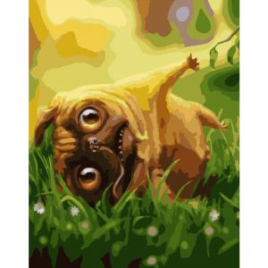 Картина за номерами Strateg ПРЕМІУМ Мопс відпочиває розміром 40х50 см (GS354)
