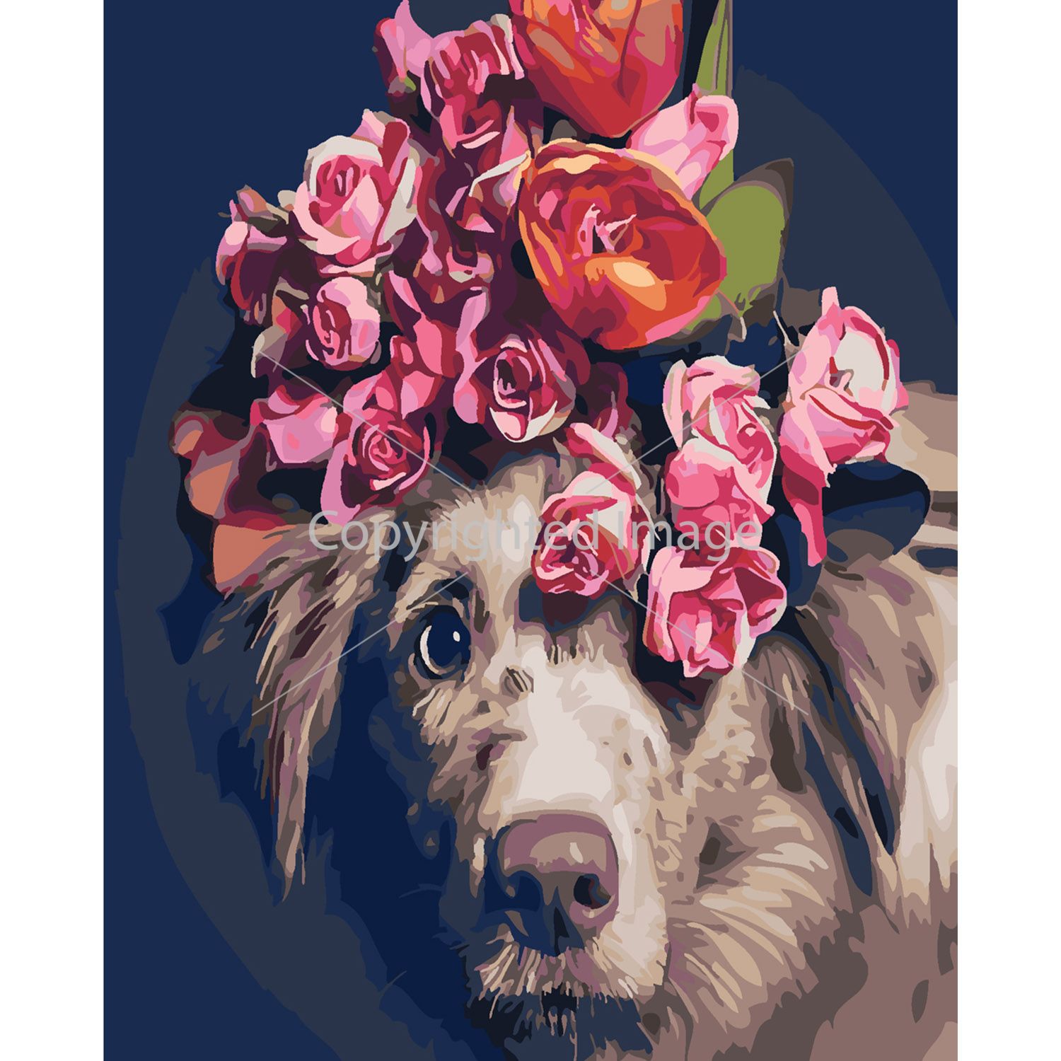 Картина за номерами Strateg ПРЕМІУМ Мордочка з квітами з лаком розміром 40х50 см SY6344