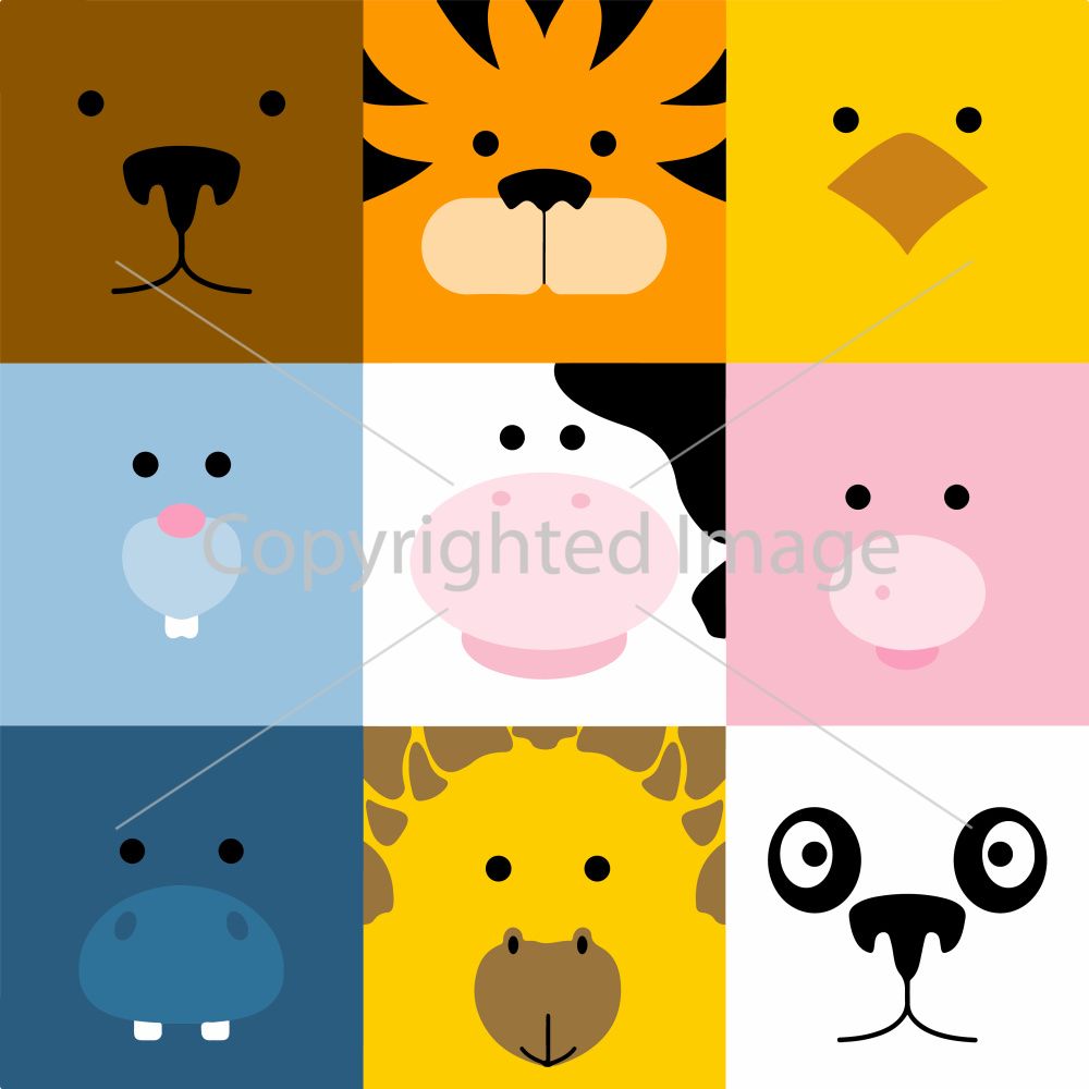 Картина за номерами Strateg ПРЕМІУМ Мордочки тваринок з лаком та з рівнем розміром 30х30 см (ES-0841)