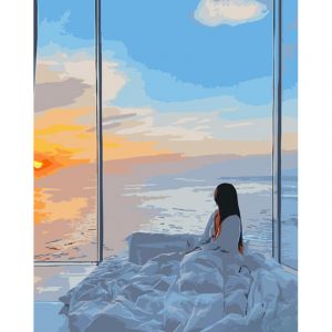 Картина за номерами Strateg ПРЕМІУМ Море за вікном з лаком розміром 40х50 см (GS1263)