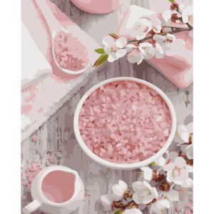 Картина за номерами Strateg ПРЕМІУМ Морська рожева сіль з лаком розміром 40х50 см VA-3764