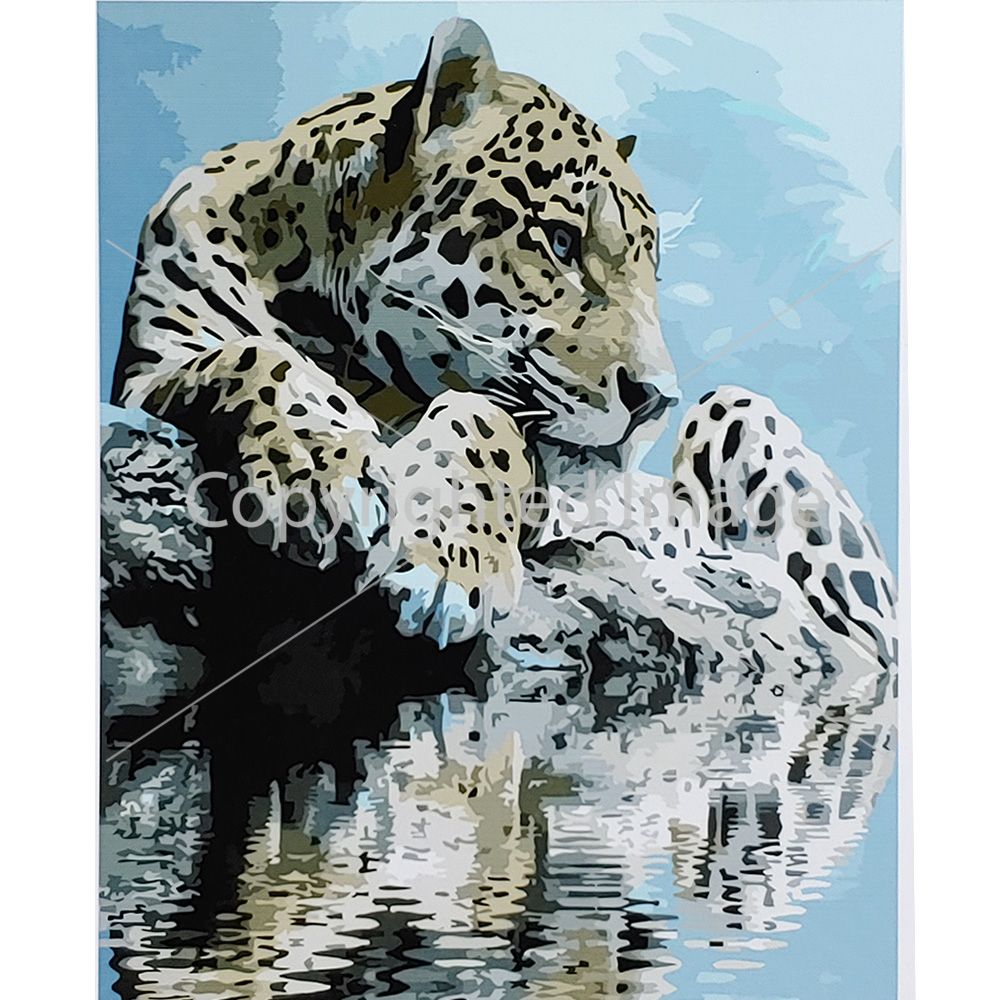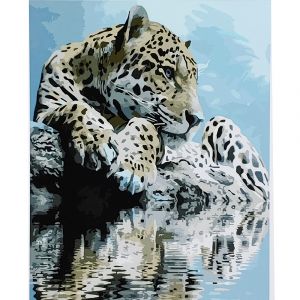 Картина за номерами Strateg ПРЕМІУМ Мрійливий леопард з лаком розміром 40х50 см (SY6904)