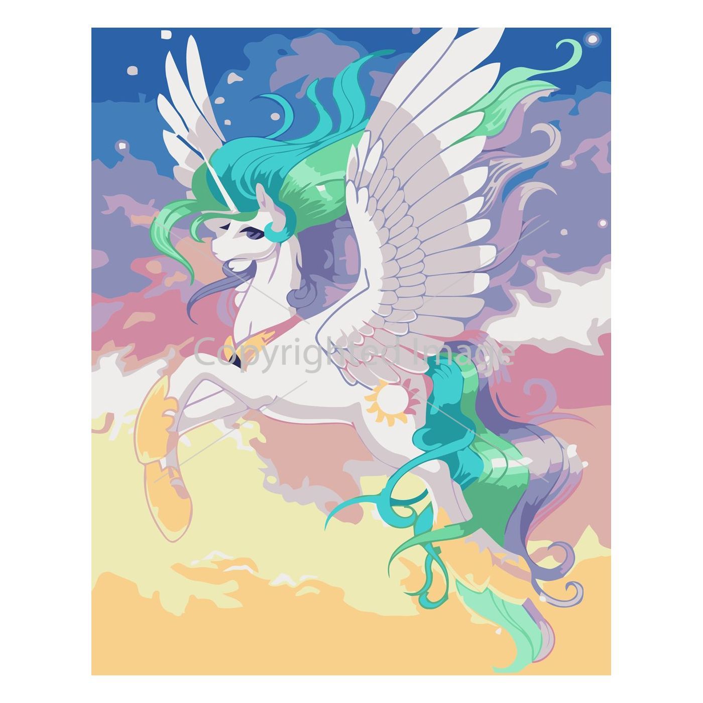 Картина за номерами Strateg ПРЕМІУМ Мрійливий пегас з лаком розміром 30х40 см SV-0027