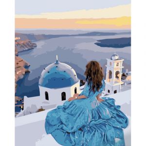 Картина за номерами Strateg ПРЕМІУМ На даху в Греції з лаком розміром 40х50 см (GS1245)