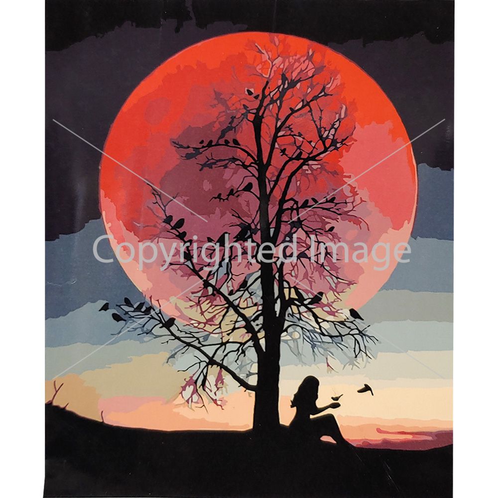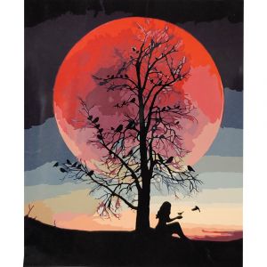 Картина за номерами Strateg ПРЕМІУМ На фоні полум'яного місяця з лаком розміром 40х50 см (SY6653)