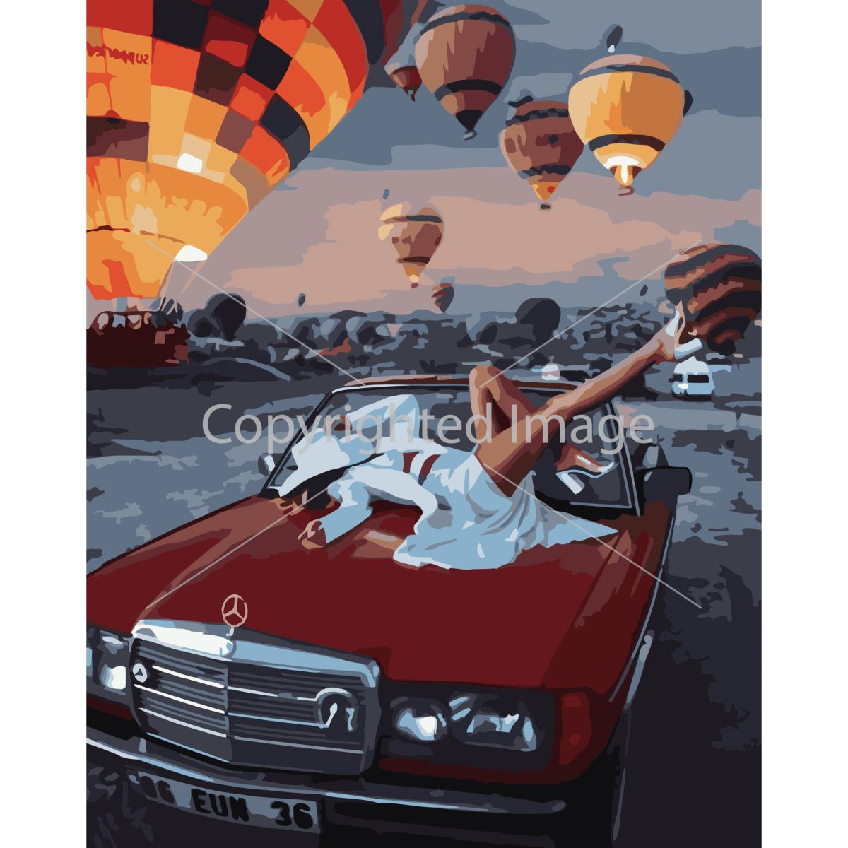 Картина за номерами Strateg ПРЕМІУМ На капоті мерседеса з лаком розміром 40х50 см (SY6745)