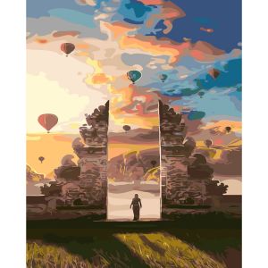 Картина за номерами Strateg ПРЕМІУМ На порозі неба з лаком розміром 40х50 см SY6299