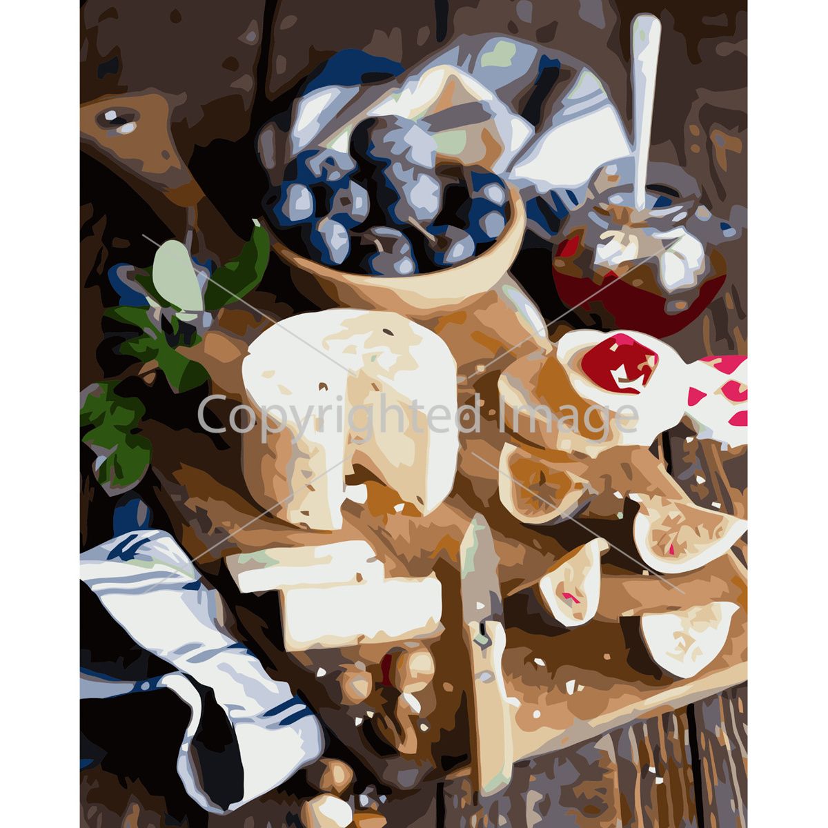 Картина за номерами Strateg ПРЕМІУМ Нарізка до вина з лаком розміром 40х50 см VA-3641