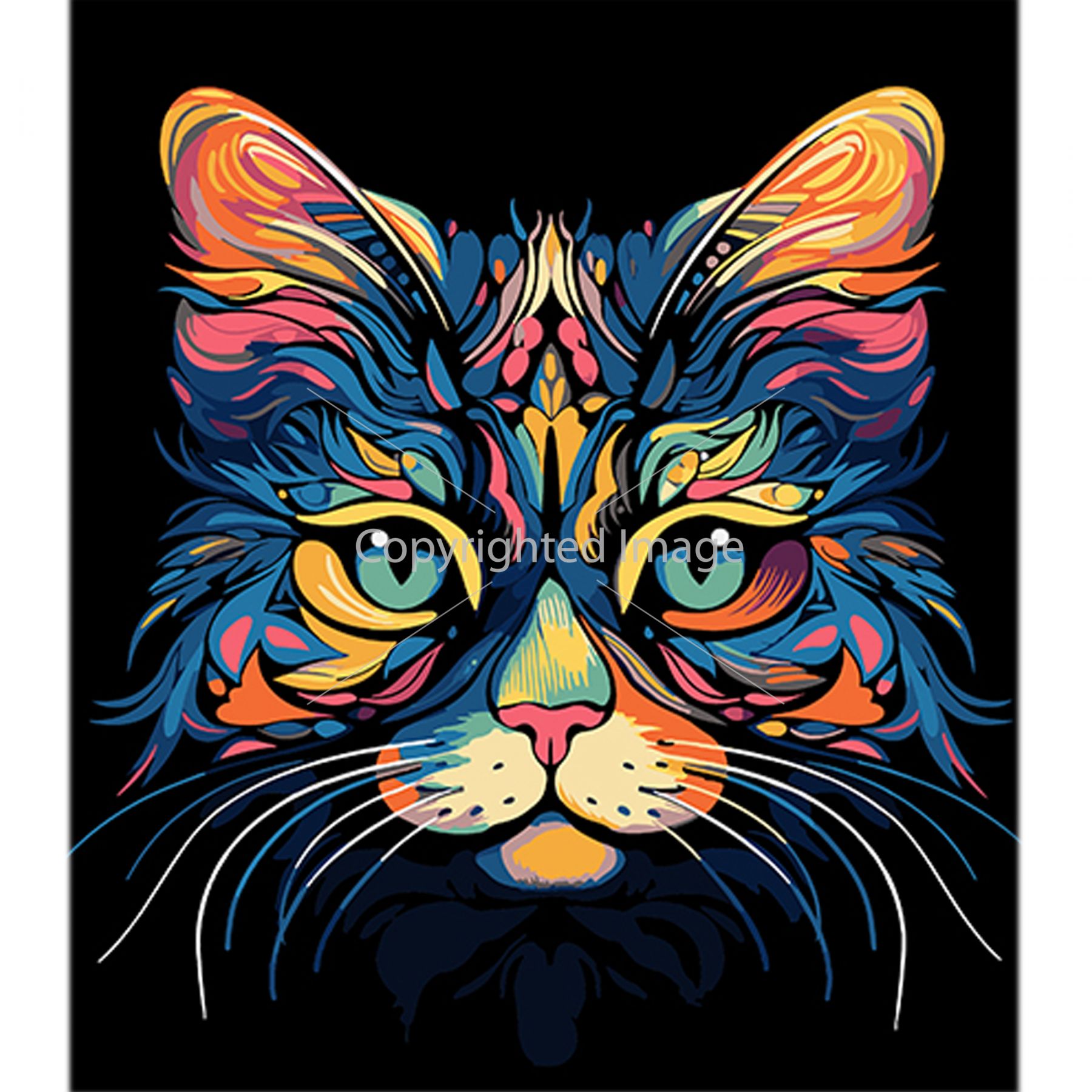 Картина за номерами Strateg ПРЕМІУМ Неонова грація кота на чорному фоні розміром 40х50 см (AH1086)