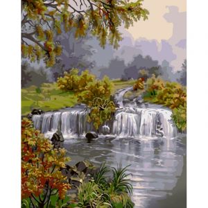 Картина за номерами Strateg ПРЕМІУМ Невеличкий водоспад розміром 40х50 см (GS1154)