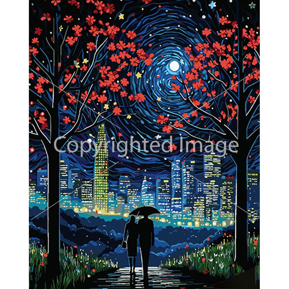 Картина за номерами Strateg ПРЕМІУМ Нічне місто під час дощу на чорному фоні розміром 40х50 см (AH1080)