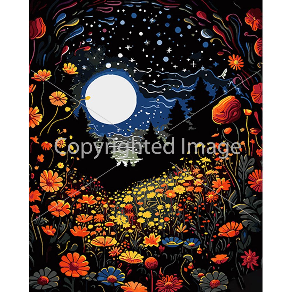 Картина за номерами Strateg ПРЕМІУМ Нічний квітковий ліс на чорному фоні розміром 40х50 см (AH1082)