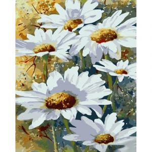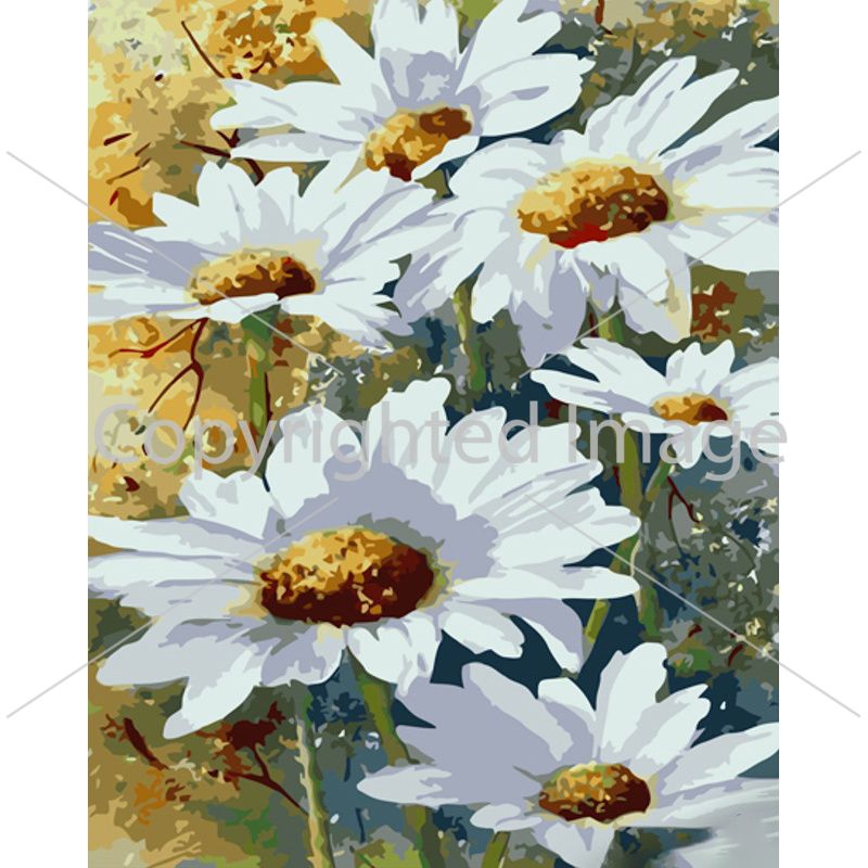 Картина за номерами Strateg ПРЕМІУМ Ніжний цвіт ромашки з лаком та з рівнем розміром 40х50 см (GS1519)