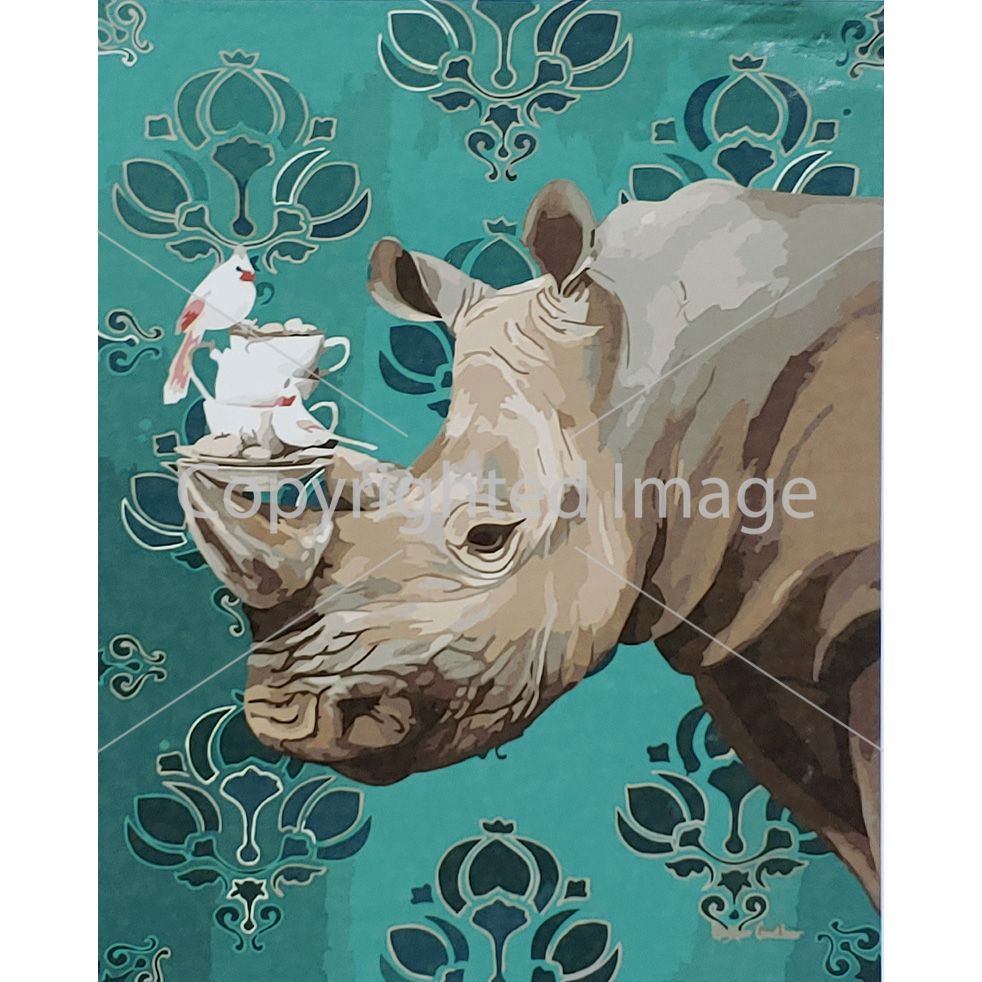 Картина за номерами Strateg ПРЕМІУМ Носоріг з пташкою з лаком розміром 40х50 см (SY6917)
