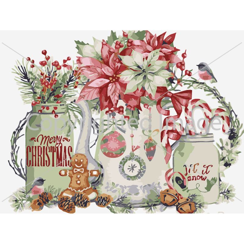 Картина за номерами Strateg ПРЕМІУМ Новорічні квіти та пряності розміром 30х40 см (SS6841)