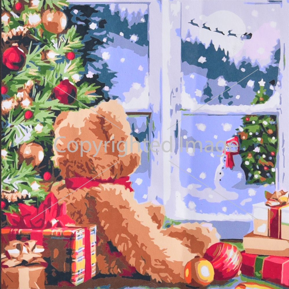 Картина за номерами Strateg ПРЕМІУМ Новорічні подарунки під ялинкою з лаком та з рівнем розміром 40х40 см(SK064)