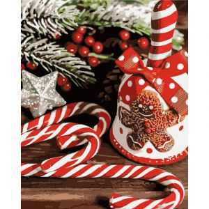 Картина за номерами Strateg ПРЕМІУМ Новорічний дзвоник з лаком та з рівнем розміром 40х50 см (GS1564)