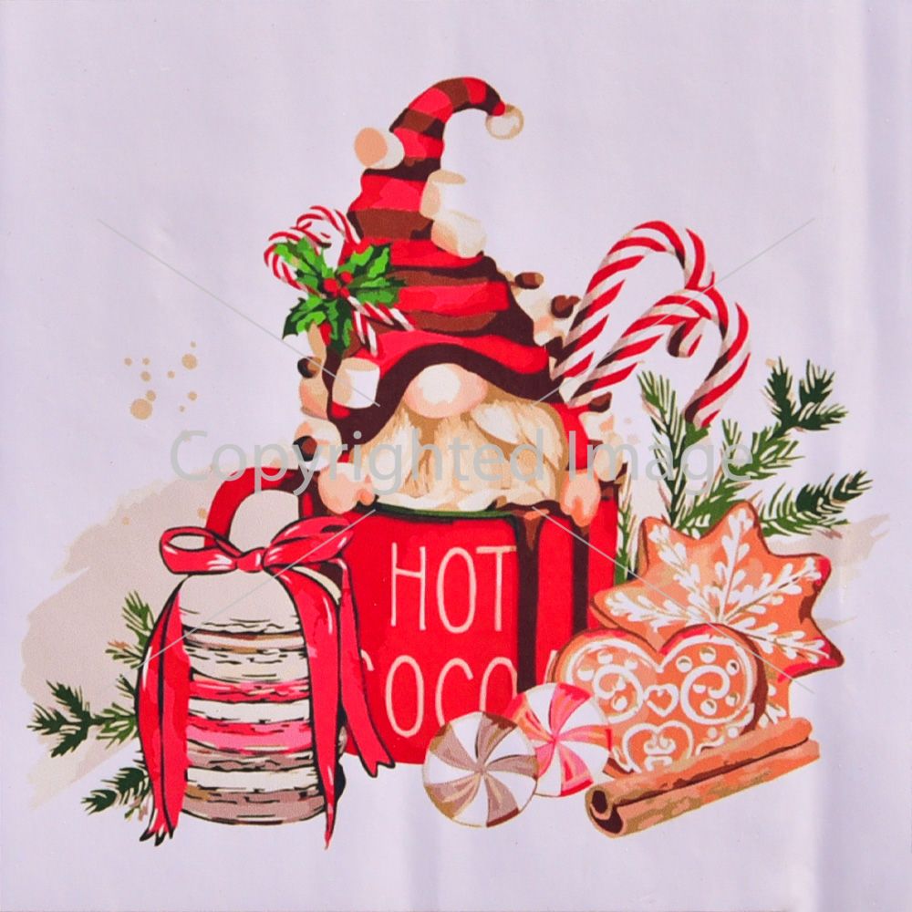 Картина за номерами Strateg ПРЕМІУМ Новорічний гном з печивом з лаком та з рівнем розміром 40х40 см(SK055)