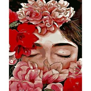 Картина за номерами Strateg ПРЕМІУМ Обличчя в квітах розміром 40х50 см (GS689)