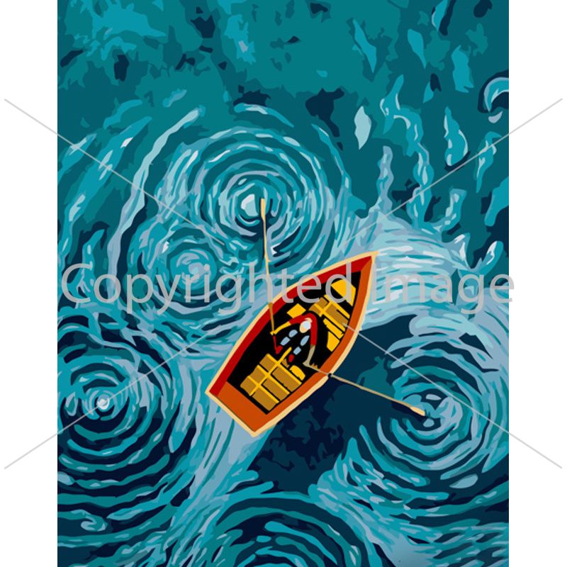 Картина за номерами Strateg ПРЕМІУМ Одинокий човен з лаком розміром 40х50 см (GS1239)