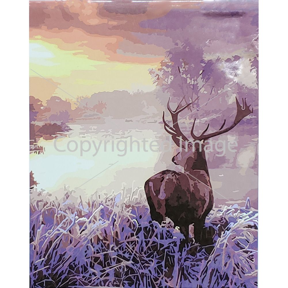 Картина за номерами Strateg ПРЕМІУМ Олень на світанку з лаком розміром 40х50 см (SY6925)