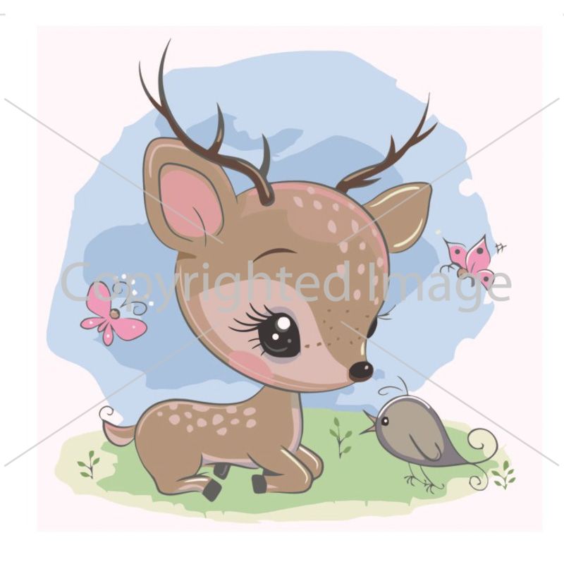 Картина за номерами Strateg ПРЕМІУМ Оленя Бембі з лаком розміром 30х30 см ES020