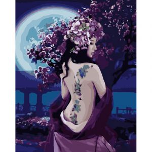 Картина за номерами Strateg ПРЕМІУМ Опівнічний бузок з лаком та з рівнем розміром 40х50 см (GS1368)