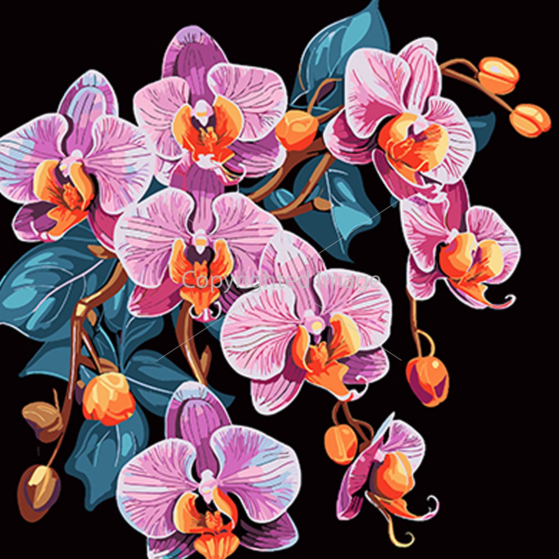 Картина за номерами Strateg ПРЕМІУМ Орхідея у вишуканості на чорному фоні розміром 40х40 см (AV4040-39)