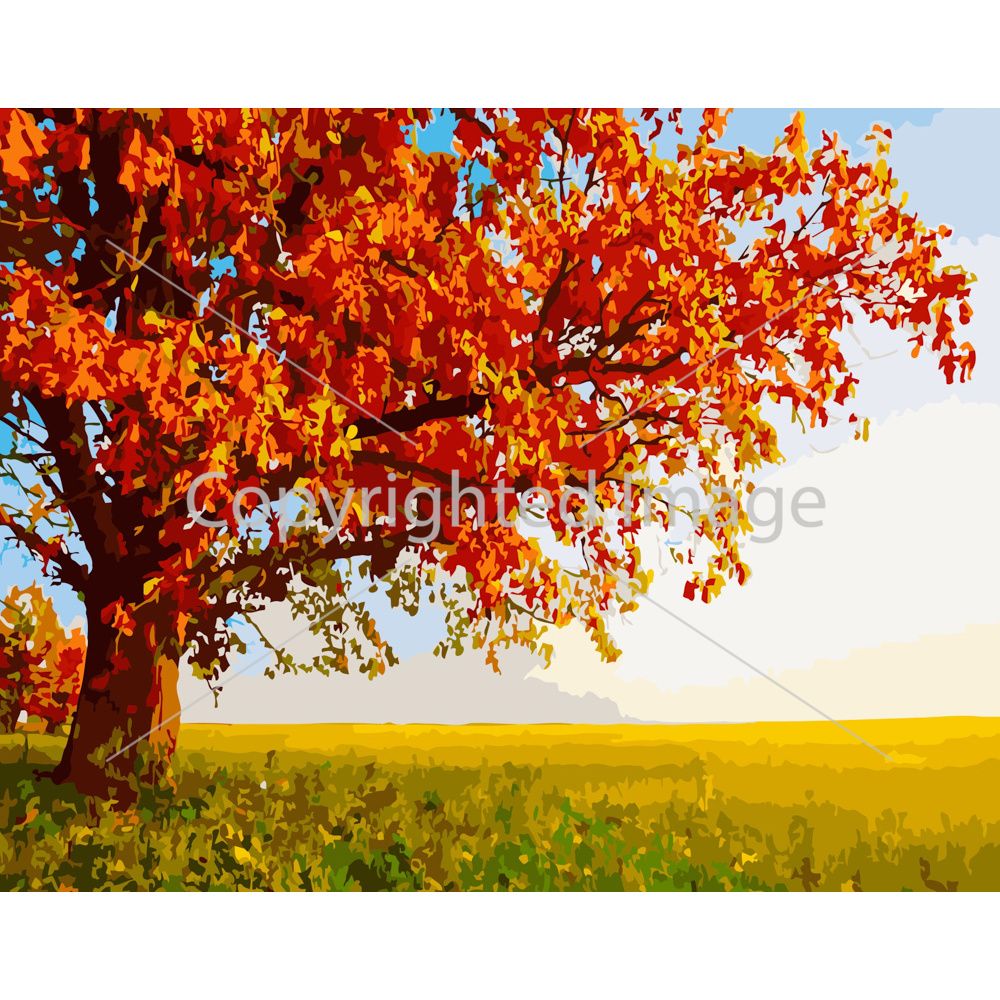 Картина за номерами Strateg ПРЕМІУМ Осінній дуб розміром 40х50 см (GS198)