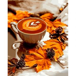Картина за номерами Strateg ПРЕМІУМ Осіння кава з лаком розміром 40х50 см (GS828)