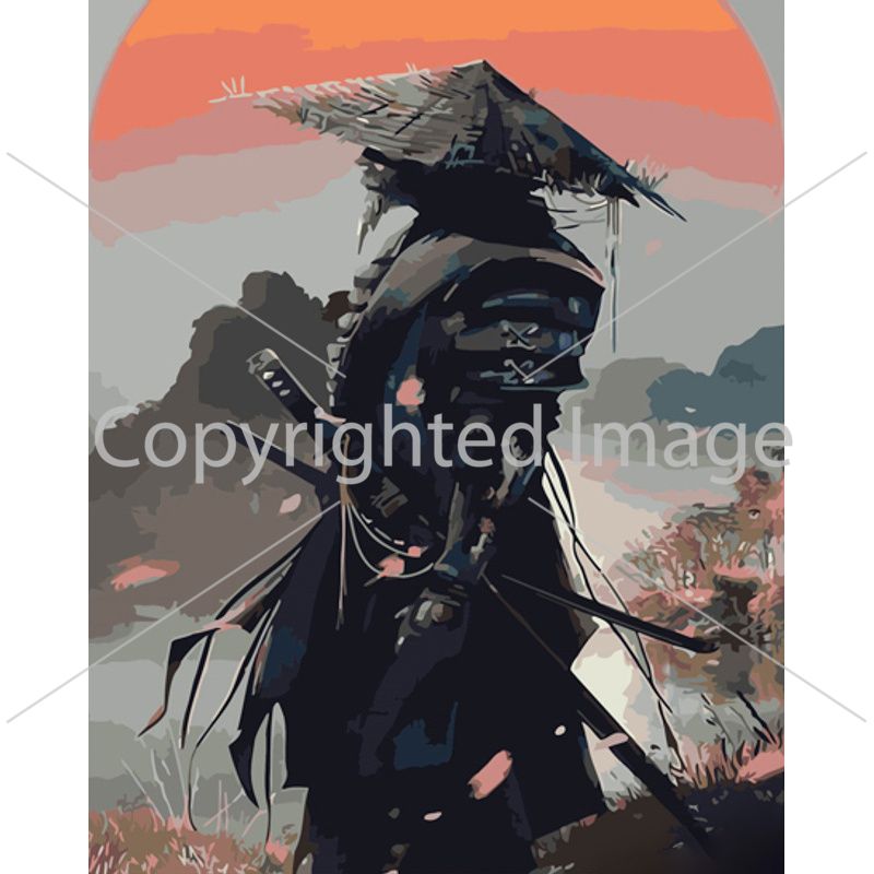 Картина за номерами Strateg ПРЕМІУМ Останній ронін з лаком та з рівнем розміром 40х50 см (GS1375)