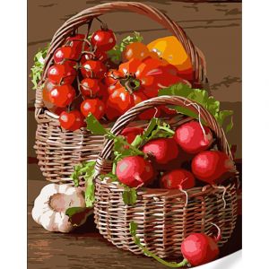 Картина за номерами Strateg ПРЕМІУМ Овочевий натюрморт з лаком та з рівнем розміром 40х50 (GS1597)