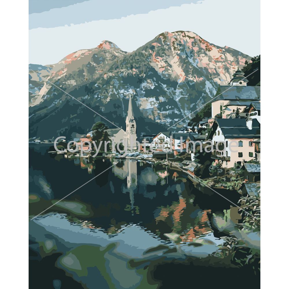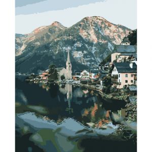 Картина за номерами Strateg ПРЕМІУМ Озеро та гори розміром 40х50 см (GS496)