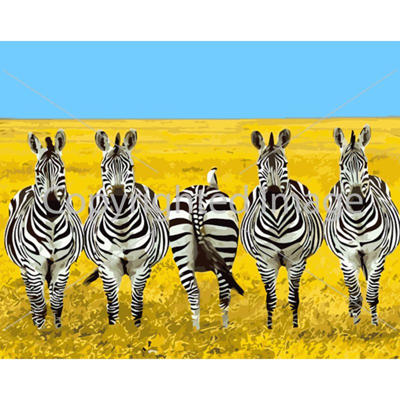 Картина за номерами Strateg ПРЕМІУМ П'ятірка зебр з лаком та з рівнем розміром 40х50 см (GS1521)