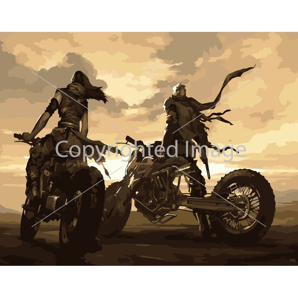 Картина за номерами Strateg ПРЕМІУМ Пара байкерів розміром 40х50 см (DY208)