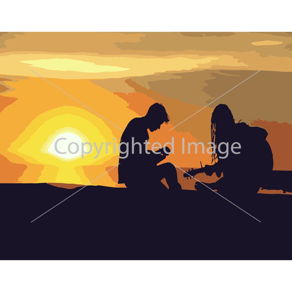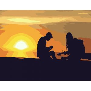 Картина за номерами Strateg ПРЕМІУМ Пара на заході розміром 40х50 см (DY074)