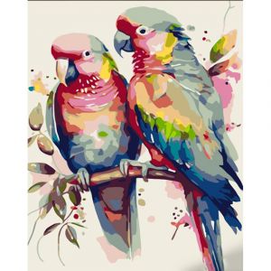 Картина за номерами Strateg ПРЕМІУМ Пара папужок з лаком розміром 30х40 см (SS6740)