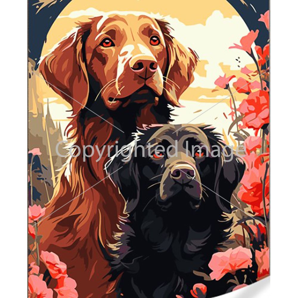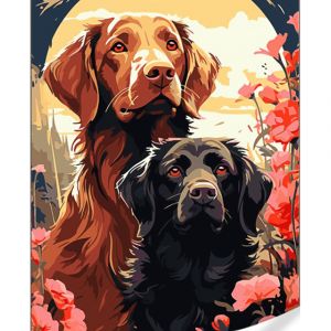 Картина за номерами Strateg ПРЕМІУМ Пара песиків з лаком та з рівнем розміром 40х50 (GS1613)