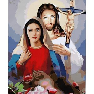 Картина за номерами Strateg ПРЕМІУМ Пара Святих з лаком розміром 40х50 см (SY6657)