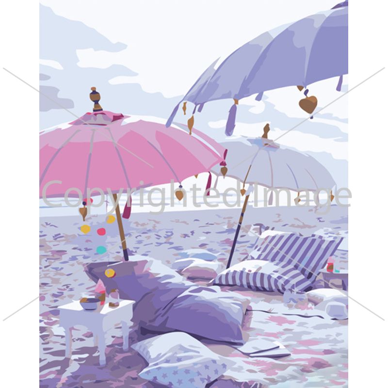Картина за номерами Strateg ПРЕМІУМ Парасолі на пляжі розміром 40х50 см (GS1232)