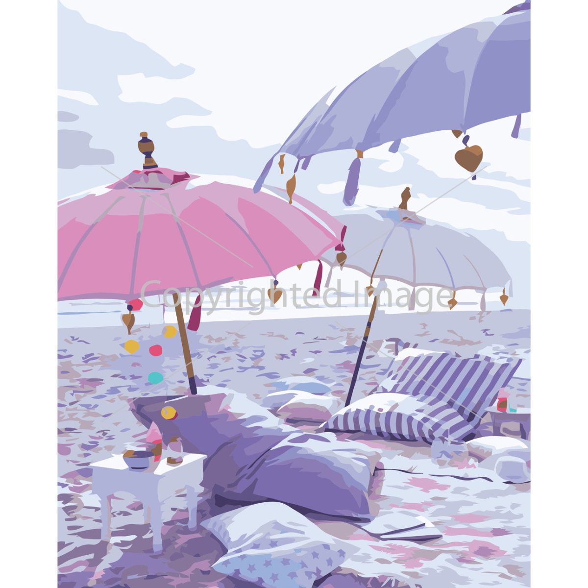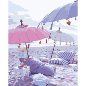 Картина за номерами Strateg ПРЕМІУМ Парасолі на пляжі з лаком розміром 40х50 см VA-3736