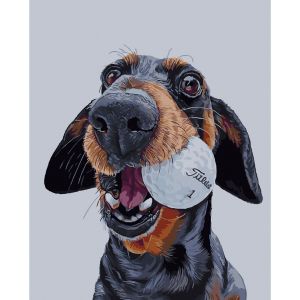 Картина за номерами Strateg ПРЕМІУМ Пес-бейсболіст з лаком розміром 40х50 см SY6127
