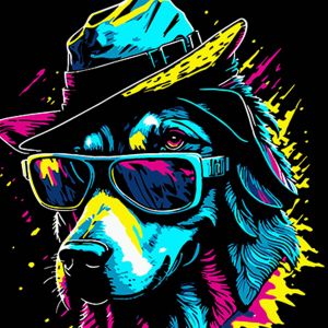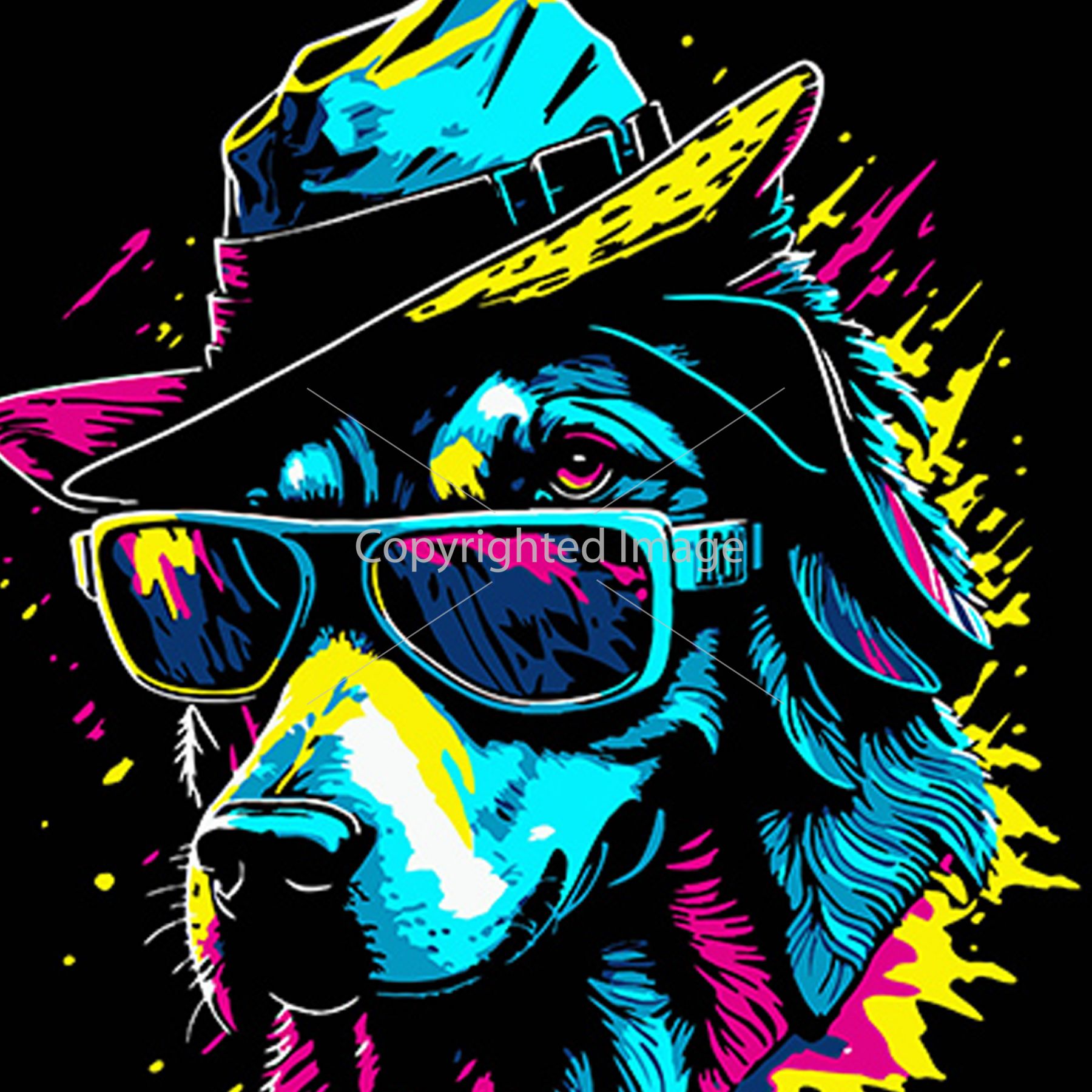 Картина за номерами Strateg ПРЕМІУМ Пес у стильній шляпі на чорному фоні розміром 40х40 см (AV4040-70)